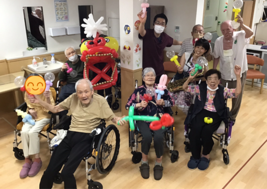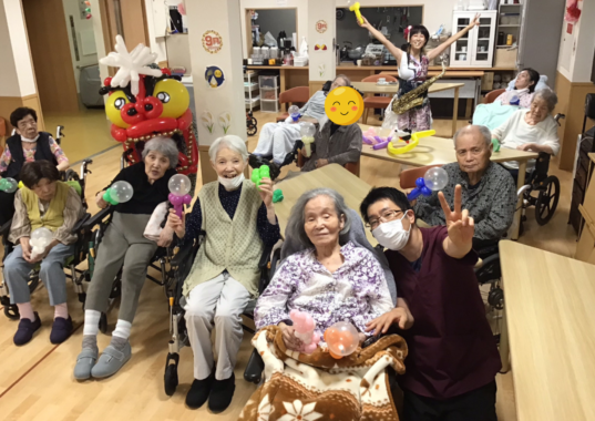 今回は一家団蘭あさひで外部よりバルーンアートのアーティストとして「あべちゃん」に来ていただいたのですが、サックスの演奏とマジックもあり盛りだくさん!!